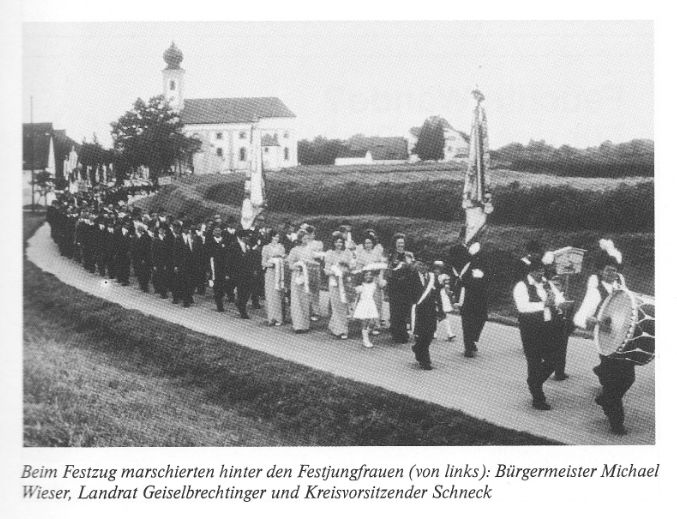 Landrat Hans Geiselbrechtinger gratulierte dem Verein und der Gemeinde zur vorbildlichen Ausrichtung des Festes und der Anteilnahme der Bevölkerung an dem Jubiläum. Die würdige Feier in der Kirche und der Schmuck der Häuser habe jeden traditionsbewußten Menschen innerlich ergriffen. Nicht überholte nationalistische Motive und Gefühle seien es gewesen, die die Krieger- und Soldatenverbände bis heute am Leben erhalten hätten - wie das von mißgünstigen Menschen immer wieder behauptet werde - sondern die aus bitterster Erfahrung gewonnene Erkenntnis, daß es den Frieden und die Freiheit unter allen Umständen zu wahren gelte. Dominierendes Motiv für die Gründung der Kriegervereine sei immer der brennende Wunsch gewesen, Ereignisse wie die Weltkriege der kommenden Generation zu ersparen.