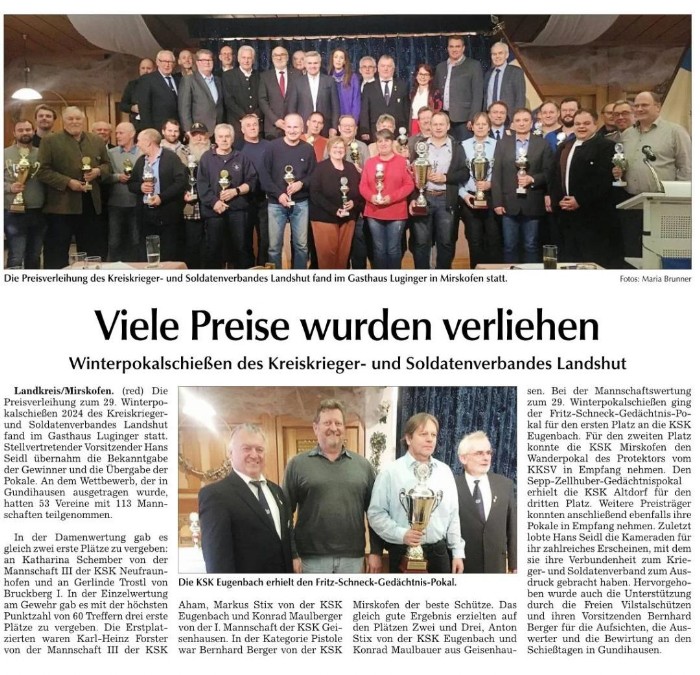 Das 29. KSK-Winterpokalschießen wurde wieder auf der Schießanlage der Freien Vilstalschützen in Gundihausen durchgeführt. Nachfolgend der Bericht veröffentlicht in der Landshuter Zeitung.