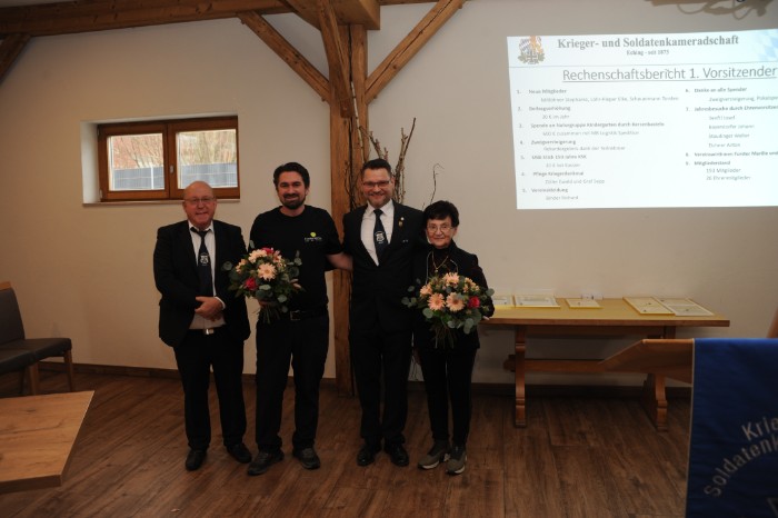 Zudem wurden Ewald Zöller und Josef Graf mit einer ganz besonderen Ehrung mit Überreichung eines Coins, einer neu angeschaffenen KSK-Münzenprägung der KSK-Eching zum Dank und Anerkennung für überdurchschnittliche Verdienste in der Krieger- und Soldatenkameradschaft Eching ausgezeichnet. Zweck des Coins ist wie Mitlöhner anmerkte, die Kameradschaft und den Zusammenhalt innerhalb der Echinger Krieger- und Soldatenkameradschaft zu fördern und zu festigen und sich als Teil des Vereins zu bekennen. In gemütlicher Runde bei einem Essen endete die Versammlung.