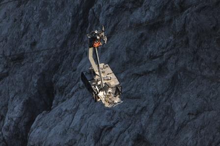 Die verunglückte Gondel der Zugspitzbahn